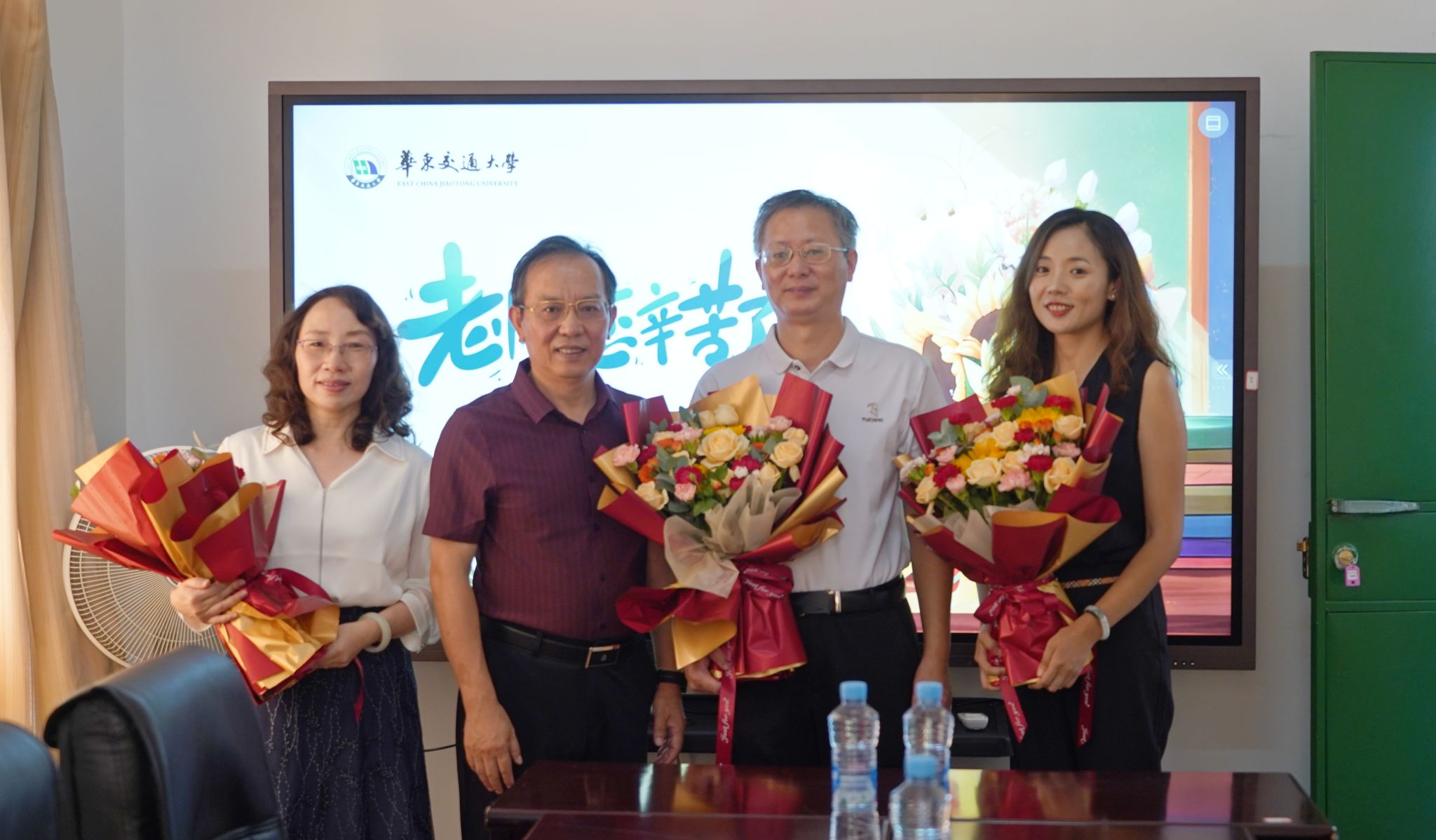 校党委书记柳和生与教师代表合影留念